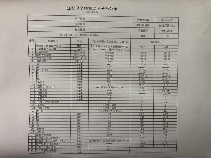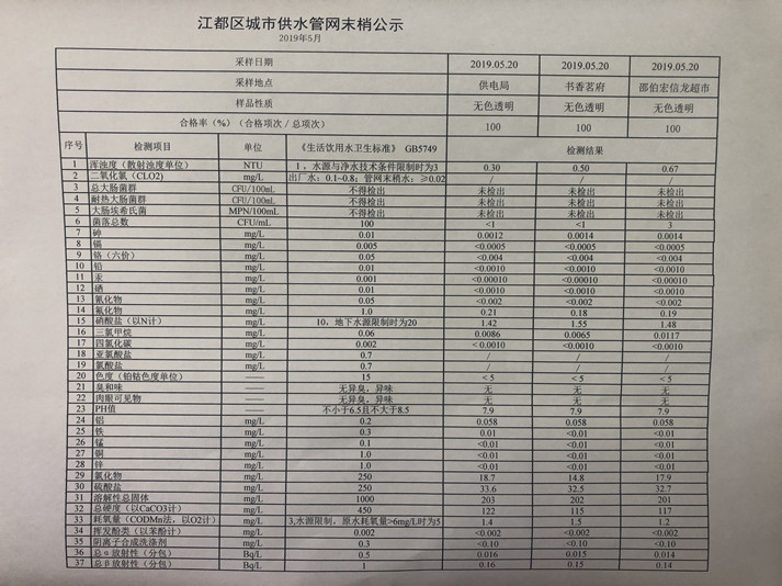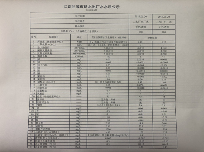 水質(zhì)公示