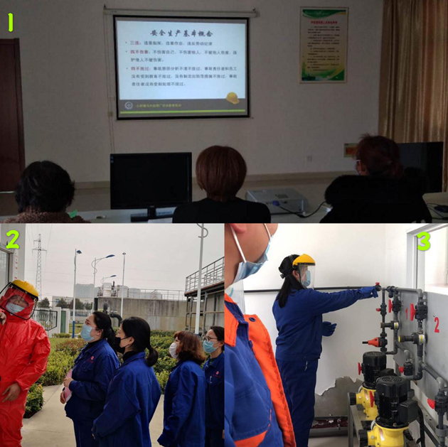 以邵伯污水廠為例,該廠結(jié)合自身工作實際,組織污水運營工學(xué)習(xí)次氯酸鈉的特性、消殺毒原理及如何正確使用防護裝備,熟練掌握次氯酸鈉發(fā)生泄漏時的各項應(yīng)急處理措施,并在現(xiàn)場實施了一系列演練活動。另組織運營工赴小紀污水處理廠內(nèi)觀看學(xué)習(xí)安全教育視頻,提高了員工安全防范意識及風(fēng)險識別能力。
