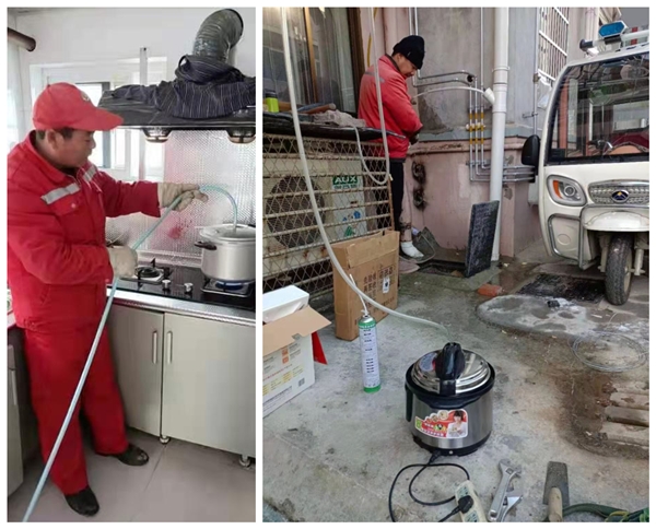 圖為公司維修服務人員上門為受凍用戶的供水設施解凍