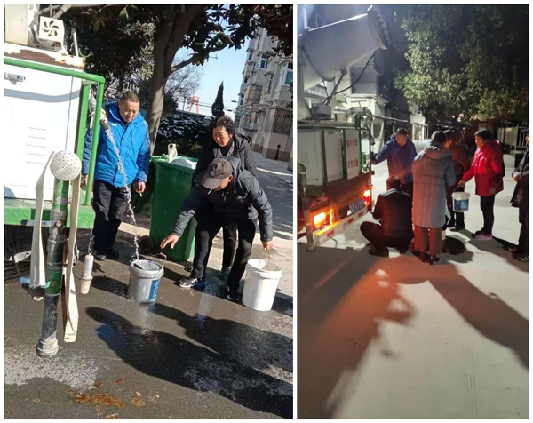1月4日,經過研究,并與物業(yè)公司協商后,制定以下方案:1.公司迅速增派送水車趕赴真武、邵伯兩地,為無水用戶進行送水服務,由物業(yè)公司負責維持送水車秩序;2.對有消火栓的小區(qū),打開消火栓,方便居民取水;3.通過用高壓鍋燒水,形成熱蒸氣,通過橡膠管將蒸氣充入供水管道內,逐漸將冰塊融化;4.對有人居住的房屋,逐戶檢查室內銅接頭,防止出現化凍時銅接頭松動漏水,造成用戶損失;5.對無人居住的房屋,暫時關閉樓下表前表后閥門,待用戶回家檢查后及時打開閥門。