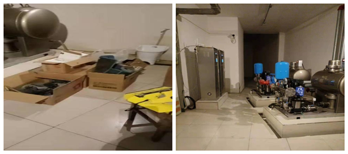 2021年12月20日在巡查過(guò)程中發(fā)現(xiàn)永勝活力城二次供水泵房?jī)?nèi)堆放大量雜物,不符合二次供水管理?xiàng)l例并存在安全隱患。而后隨即與物業(yè)取得聯(lián)系,得知是物業(yè)改造電動(dòng)車(chē)充電樁,施工工人將施工工具全部放入泵房,與物業(yè)負(fù)責(zé)人溝通后,于當(dāng)日下午將二次供水泵房?jī)?nèi)的雜物全部清除,并打掃干凈。