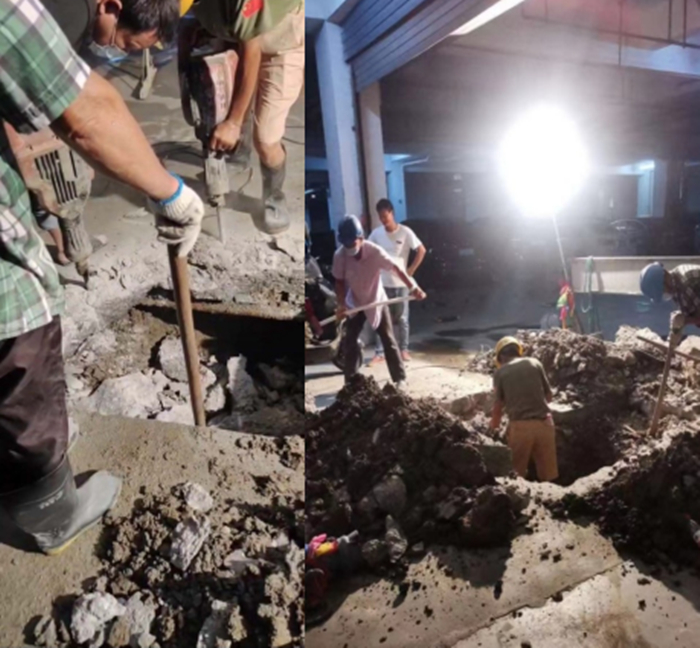 8月12日晚上19時30分許,突然接到搶修電話,明珠山莊因管道爆漏導致全小區高層沒水。龍泉公司維修部李兆軍主任得知消息立即奔赴現場,親自指揮搶修。因疫情防控現場找不到挖機,且漏點上方混凝土厚度達25公分,隨即又調來4個民工,3個鋒鎬同時作業采取歇人不歇機的方式。一直持續到次日凌晨3點30分,搶修完畢,管道修復,恢復供水。