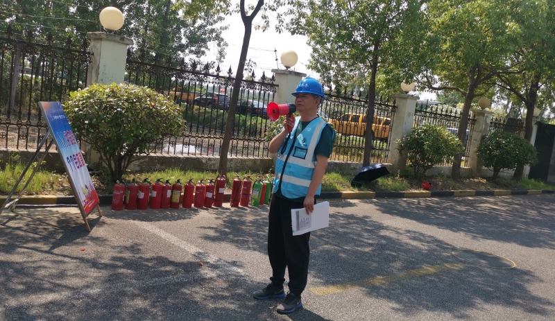 活動開始由負責人蔣珀做演練前消防安全講話,要求各部門樹立安全意識、責任意識、大局意識,學好消防知識,練好技術本領,積極參與安全培訓,宣傳落實公司安全要求,此次參與演練活動人員要個個參加,服從指揮安排,確保自身安全。安全辦主任高靜波向大家宣傳講解了日常消防安全知識及遇到火災的注意事項等,并由應急成員現(xiàn)場演示干粉、水基等不同滅火器的正確使用方法。由副經(jīng)理吳文華宣布消防演練活動正式開始,并組織人員負責在指定地點進行點火。