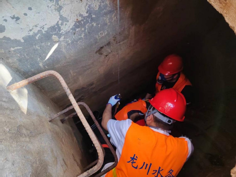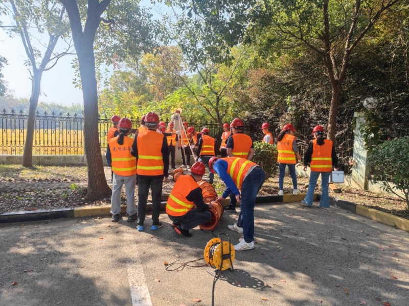 演練內(nèi)容為模擬有限空間事故發(fā)生在丁伙泵站進水閥門井現(xiàn)場,由于人員違章操作,在未經(jīng)審批的情況下,下井作業(yè)暈倒,情況十分危急,指揮組命令立即啟動有限空間應(yīng)急搶修預(yù)案,各小組人員立即趕往現(xiàn)場進行救援。
