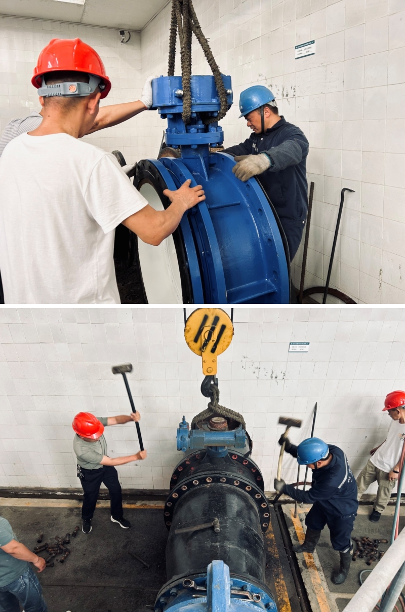5月22日更換閥門的工作按計劃進行,第二水廠機修班組與泰興市偉業閥門有限公司的安裝人員完美配合,緊鑼密鼓地完成各個步驟,有條不紊地解決難點,按預定時間完成了更換任務。