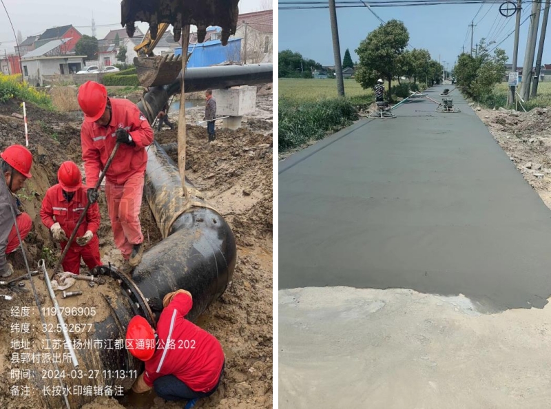 揚州龍泉建設工程有限公司克難求進完成郭村DN1000管線維修