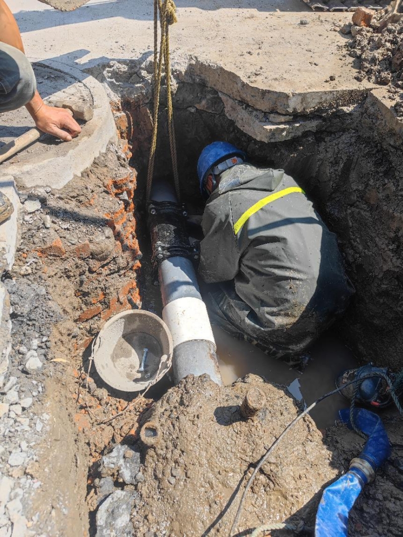 本次演練充分模擬了供水管道發生破裂的情況。在演練過程中,搶修人員首先迅速到達事發現場,展開現場勘察和評估工作。隨后,根據現場實際情況,搶修人員及時采取了必要的緊急措施,如切斷供水管道、更換DN150伸縮節等。整個搶修過程迅速、有序,有效保障了供水系統的正常運行。