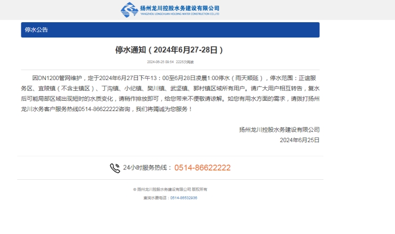 揚州龍泉建設(shè)工程有限公司在通過現(xiàn)場實際查勘的基礎(chǔ)上,成立了專項施工隊伍,編制專項施工方案。與建設(shè)單位管網(wǎng)辦及揚州長江水務(wù)有限公司主管部門積極對接,了解管道施工碰接上下游主管道控制閥門,中途排污閥門及壓力表設(shè)備裝置,通過召開停水施工會議,確定了具體停水施工日期,由建設(shè)單位管網(wǎng)辦于會議48小時后在網(wǎng)上發(fā)布停水通知。