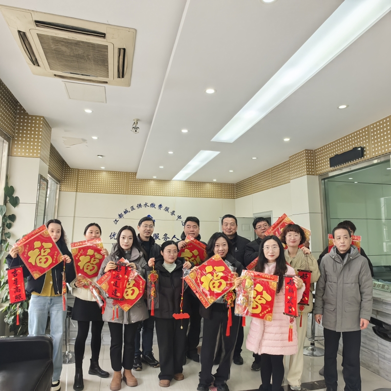 活動(dòng)現(xiàn)場,由龍川水務(wù)公司總經(jīng)理李忠國親自帶隊(duì),公司工會(huì)主席石元忠、副主席孫劍及黨群部工作人員共同組成新春走基層特別慰問小組陪同,他們帶著精心挑選的一系列洋溢著喜慶氛圍的“福”字,以及富有蛇年特色的掛件禮物,深入各部門與子公司的集中辦公點(diǎn),每到一處,都受到了職工們的熱烈歡迎。一張張?jiān)⒁庀槿鸬?ldquo;福”字,一件件憨態(tài)可掬的蛇年掛件,一句句飽含深情的真切問候,如冬日暖陽,將濃濃的年味兒與新春的祝福,精準(zhǔn)地傳遞到每一位職工的心坎上,讓整個(gè)公司沉浸在歡樂祥和的春節(jié)氛圍之中。
